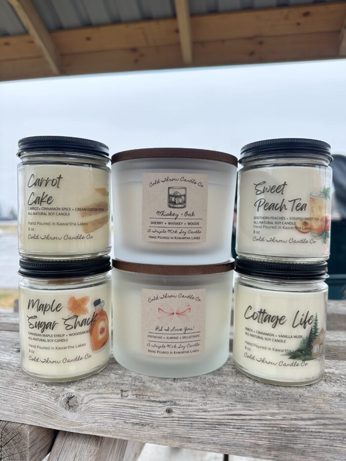 Cold Throw Candle Co. is based out of cottage country in the Kawartha Lakes. All their candles are hand poured in small batches using only 100% natural soy wax and the highest quality materials. Their candles give off an amazing “cold throw” scent before they are even lit.